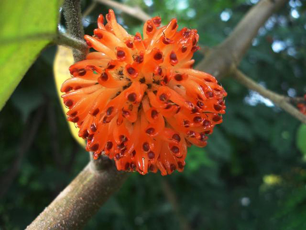 构果茶 构树别名楮桃,为落叶乔木,其适应性、抗逆性很强,地边、沟坡、渠堰甚而墙缝、石缝中都能觅寻到,掐断它的枝叶,能冒出白生生的汁液。构树果子到了深秋成熟,一枚枚圆圆的果球上密匝匝长有绒绒的果肉,红艳艳的在枝叶间飘摇,诱引得鸟儿纷纷飞来啄食。构树果清甜甜的,中医称为楮实子、构树子,具有补肾、强筋骨、明目、利尿等功效,常用于疗治腰膝酸软、肾虚目昏、阳痿早泄、水肿等症。采集来晒干做茶,可与桑葚干同泡饮,其效更优,其味更佳,酸甜可口,清香怡人。