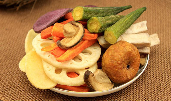 大多数果蔬,如果直接晾晒的话,可能会在其还没有完全变干之前,往往就先坏掉了。因此,我们现在能买到的果蔬干,大多是经过特殊的加工处理过的,而且这种果蔬干吃起来的口感往往是既甜(尤其是果脯等)又咸,而且一咬还脆脆的。了解其加工工艺就会发现,在制作果蔬干的过程中,一般都会将果蔬过油或者油炸。而且配料表中也会标注有麦芽糖、食用油等成分。此外,还要留意钠的含量,如果是高糖、高油、高钠的果蔬干,就放弃吧,远不如直接吃果蔬更健康。
