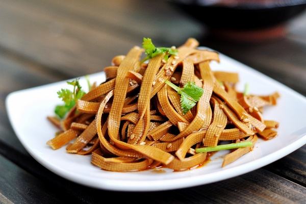 豆腐皮是一种豆制品,其实它的热量并不低,每100g的豆腐皮热量是459大卡!是因为豆腐皮主要是由大豆蛋白膜和脂肪构成,基本上黄豆中的大量脂肪都集结在了豆腐皮之中。所以别以为是豆制品,就放开豆腐皮或腐竹类的食物哦。