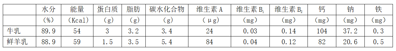 (每100g牛奶和羊奶营养成分对比)