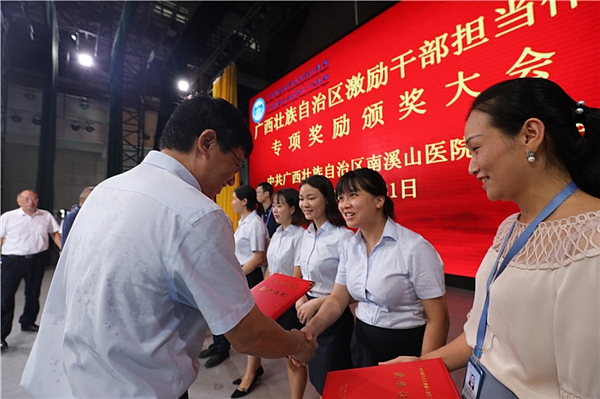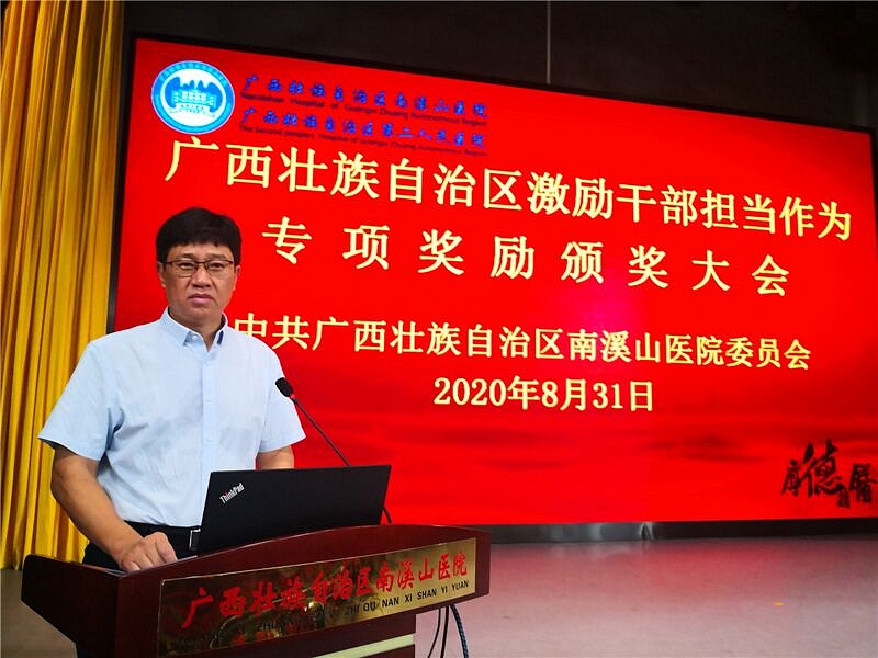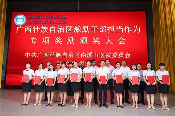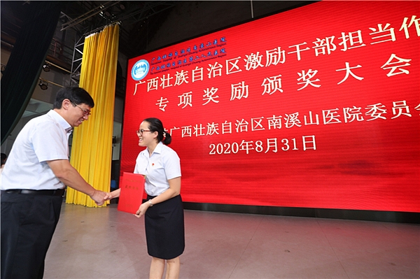 近日,自治区南溪山医院在该院大礼堂隆重举行颁奖大会,为荣获2020年度广西壮族自治区激励干部担当作为专项奖励的13名职工进行颁奖。
