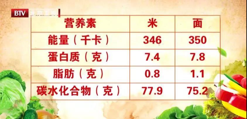 其实二者的营养也是近似的——根据《中国食物成分表》的数据,同等重量的稻米(大米)和小麦粉(特精粉)含有的三大营养素相差无几,同时其他营养素,如膳食纤维、B族维生素、铁、钠等的含量也基本类似。
