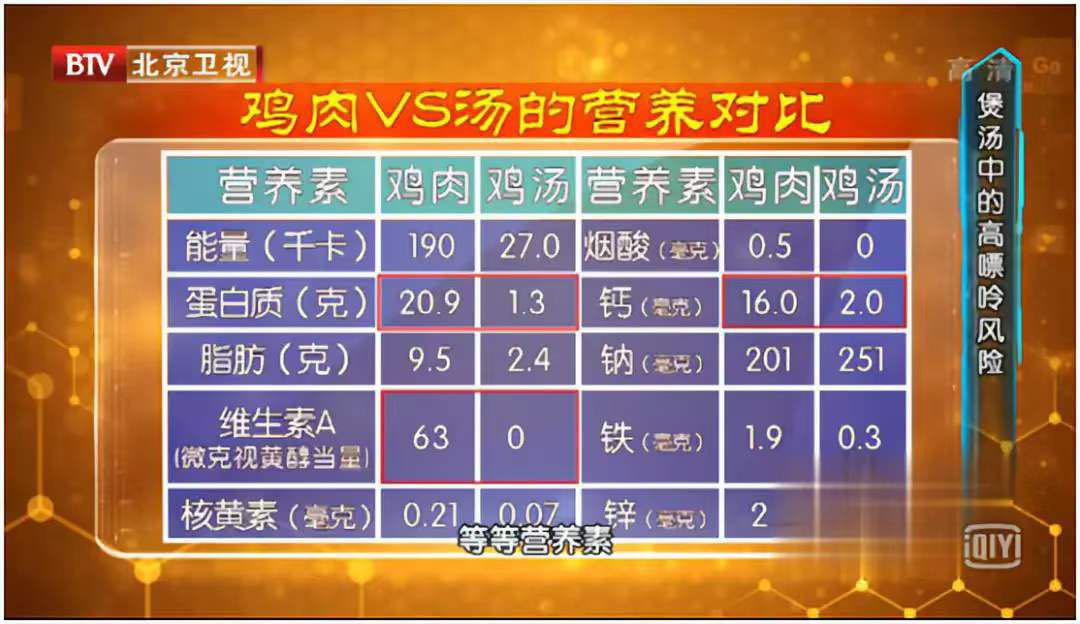 鸡汤历来被人们当作滋补佳品,有的人甚至“只喝鸡汤不吃鸡肉”。而这些人往往认为,鸡肉经过长时间的炖煮,肉里的精华都已经溶解到汤里了,因此汤的营养价值肯定要高于鸡肉。