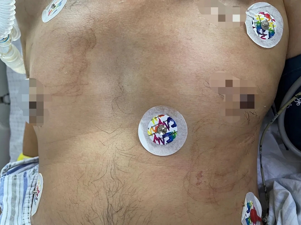 神志昏迷、呼吸微弱的潘先生被家人紧急送至桂林医学院第二附属医院急诊科。急诊科医生立即对患者进行气管插管、机械通气,心电监护仪提示恶性心律失常、频发室颤,血压监测不到,瞳孔散大,立即进行心肺复苏、心脏电除颤等抢救治疗。