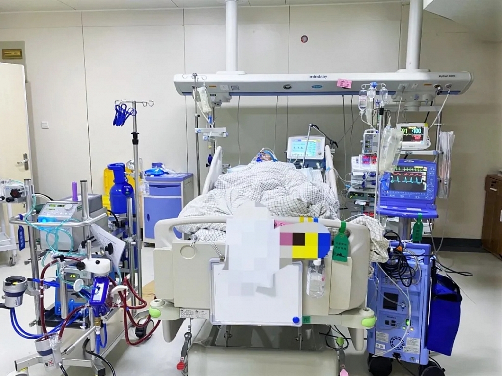 时间就是生命!重症医学科医师与患者家属详细交代病情及预后情况,家属签字同意VA-ECMO、IABP等积极抢救治疗。ECMO团队分工合作、各司其职,仅用短短30分钟穿刺操作便顺利置入动、静脉导管,护理团队装机、预充管路等工作有条不紊的完成,连接动、静脉管路……开启VA-ECMO支持治疗后,潘先生的血压逐渐趋于稳定,大剂量升压血管活性药物也逐渐撤离。复查心脏超声发现他的心脏跳动微弱,心脏收缩功能差,予行股动脉穿刺置管,IABP(主动脉内球囊反搏)心脏功能辅助治疗。