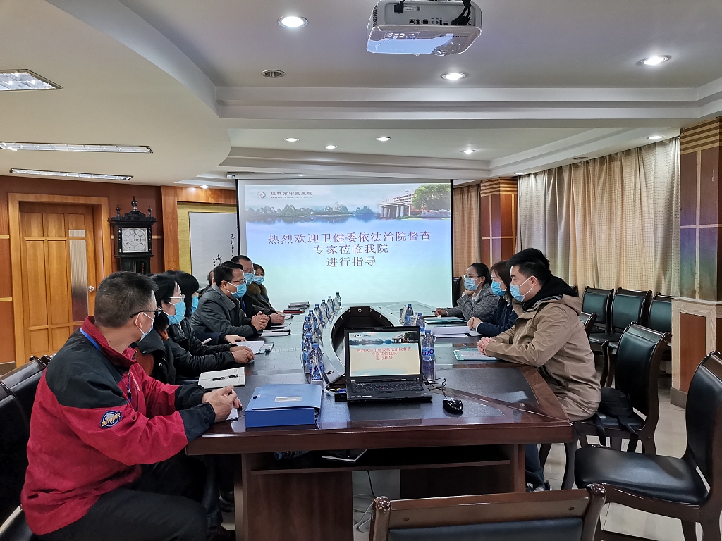 11月12日,桂林市卫健委专家组到桂林市中医医院开展全面依法治院现场核验督查工作。副院长邓建华陪同检查。