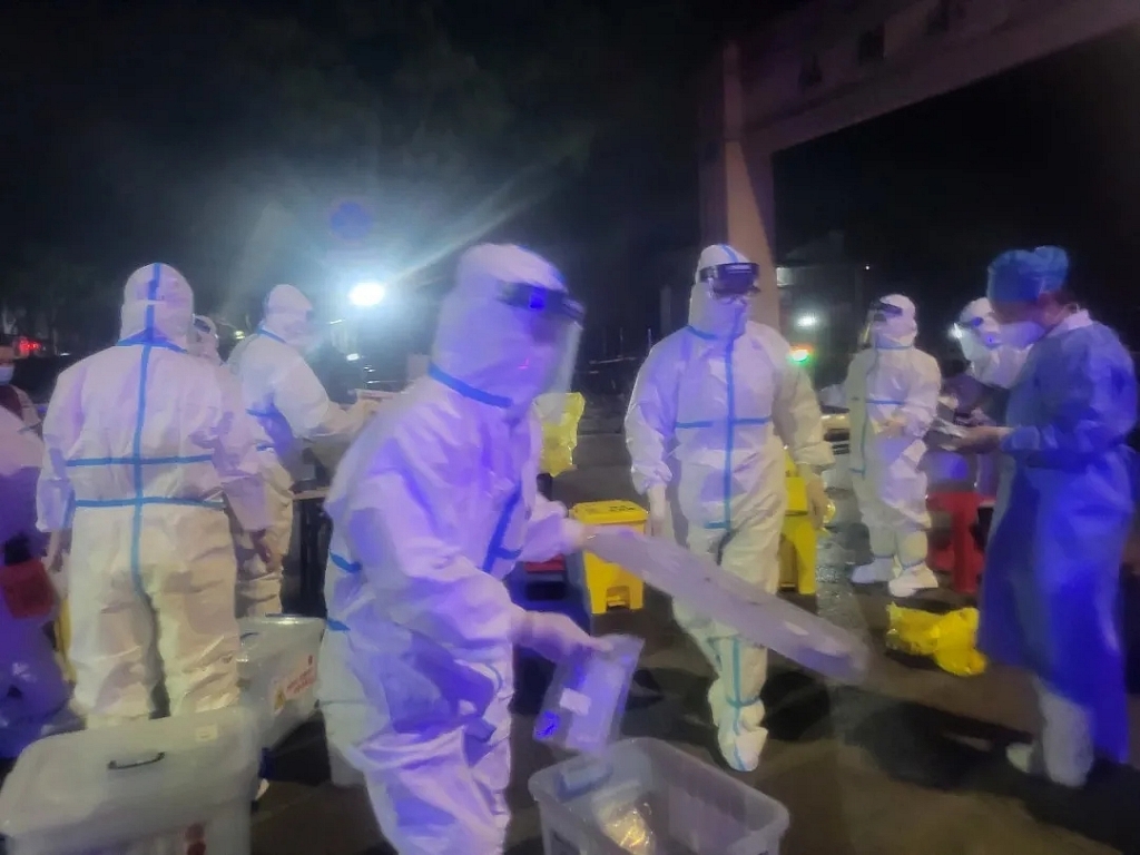 作为临桂区的唯一一家三级甲等综合医院,12月6日晚上医院闻令而动,医院党委书记文琼仙、院长葛波、副院长袁晟光靠前指挥,医务部、护理部、后勤部、检验科、信息科等部门第一时间组织50多名医务人员成立两支应急核酸检测医疗队,并调齐核酸检测设备,于12月7日凌晨1时许前往阳性患者在临桂的活动轨迹之地仙湖路段全力配合落实核酸检测等各项疫情防控措施。历经四个多小时的通宵取样,12月7日凌晨五点多完成采集核酸检测阶段性任务,通过医护人员和检验人员通宵加班的不懈付出,并于当天早上6时45分600多份核酸取样全部出检验结果,检验结果显示全部为阴性。