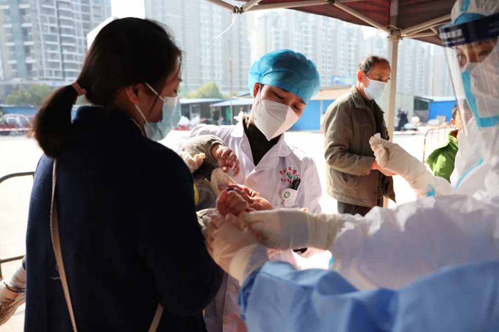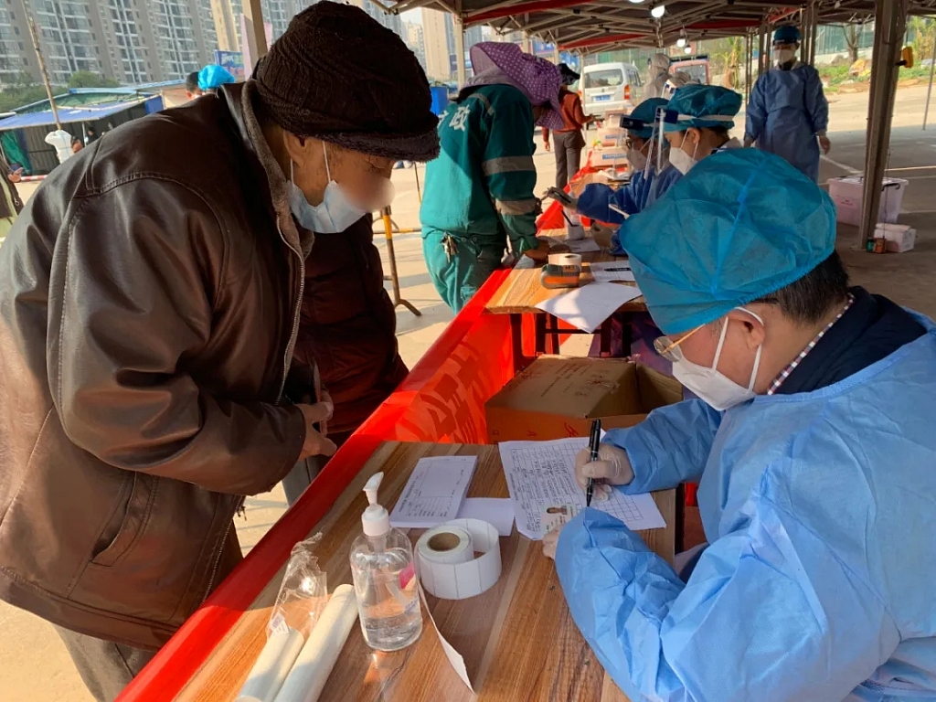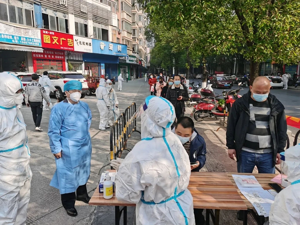 “小宝宝别哭,来,请摘下口罩,张口……”“阿姨,我来教你扫码登记信息”……身穿防护服的取样医护人员认真对待每一位来取样的居民,让居民倍感亲切。