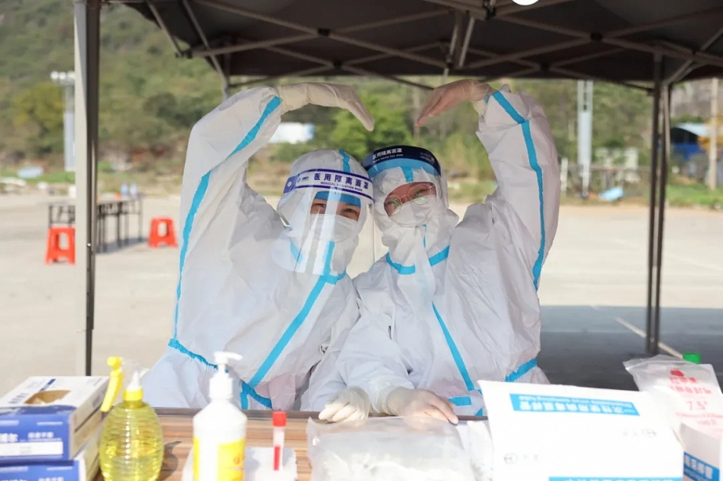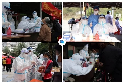 大雪节气过后的桂林冬日很温暖,而当天穿着防护服的“大白”们经过半天的忙碌,同样的动作重复上千遍,汗水还是浸透了衣服。但为了让居民少排队,“大白”们顾不上休息,继续奋战一线为居民认真做核酸检测。不少居民对“大白”们纷纷点赞。