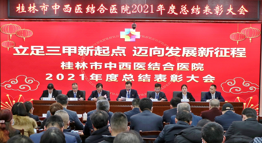 1月27日,桂林市中西医结合医院在中医文化大讲堂举行2021年度总结表彰大会。