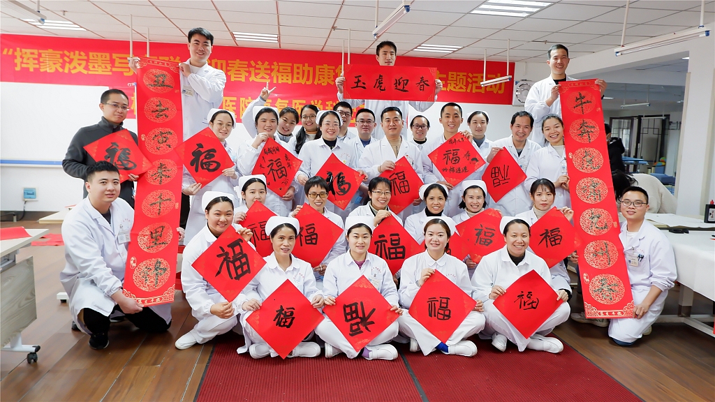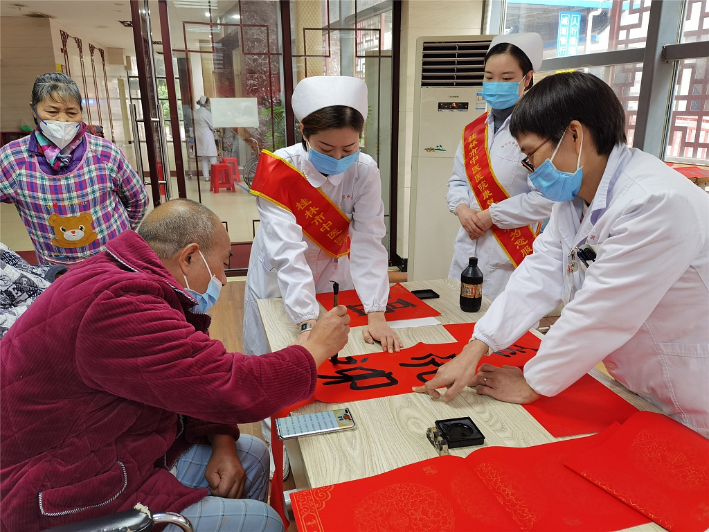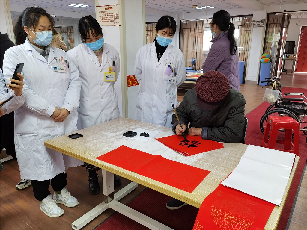 为进一步丰富住院患者的文化生活,增添春节节日气氛,1月23日,桂林市中医医院康复医学科举办“迎新春 写春联”康友汇主题党日活动,活动邀请了桂林市知名书院的师生们免费为患者及家属写春联,并与康友们进行书法教学互动。