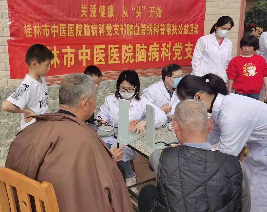3月5日上午,桂林市中医医院组织党员志愿者赴平乐县石龙厂村开展送医下乡义诊及慰问老党员活动。