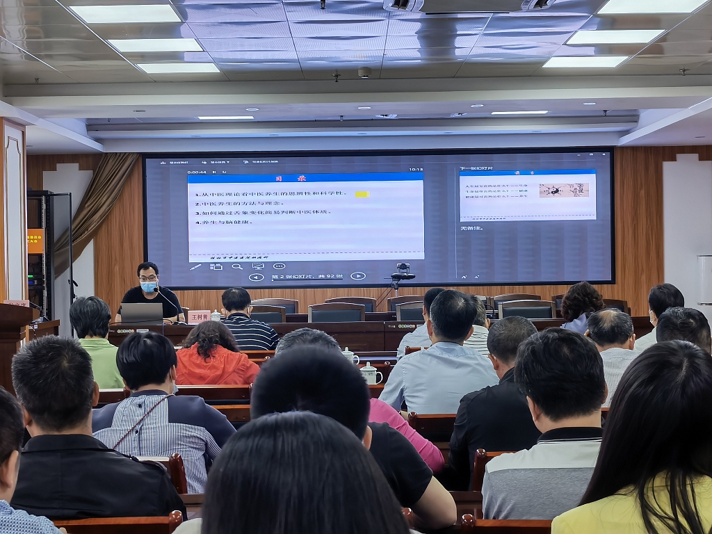 桂林市中医医院脑病科党支部书记、脑病科副主任王树青以《关注自身健康 浅谈中医养生》为题,将中医“未病先防”的健康理念与丰富的临床经验相结合,从中医养生的思辨性和科学性、中医养生的方法与理念、如何通过舌象变化简易判断中医体质、脑的养生方法等多个方面进行深入浅出地讲解。通过授课,卫健委机关干部职工学习了养生保健知识,提高了对“治未病”的认识,充分感受到了中医的博大精深和中医传统文化魅力。