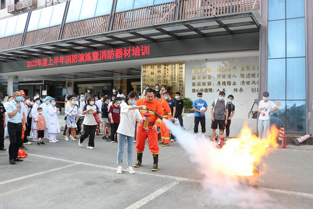 为进一步加强消防安全教育,提高职工消防安全意识及突发事件应急反应能力,6月27日下午,桂林市中西医结合医院开展消防演练暨消防器材培训,全院各科室相关人员、义务消防员、消防重点科室工作人员及新入职人员参加培训演练。