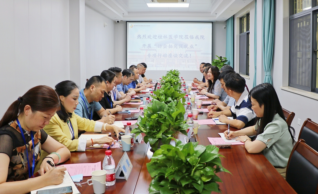8月4日,桂林医学院招生与就业指导服务中心主任谢恒一行8人来到桂林市中西医结合医院开展“访企拓岗促就业”专项行动座谈会。桂林市中西医结合医院院长蒋福明,副院长杨景毅、冯丽平、陈明、靳清及相关职能科室负责人参加了座谈会。