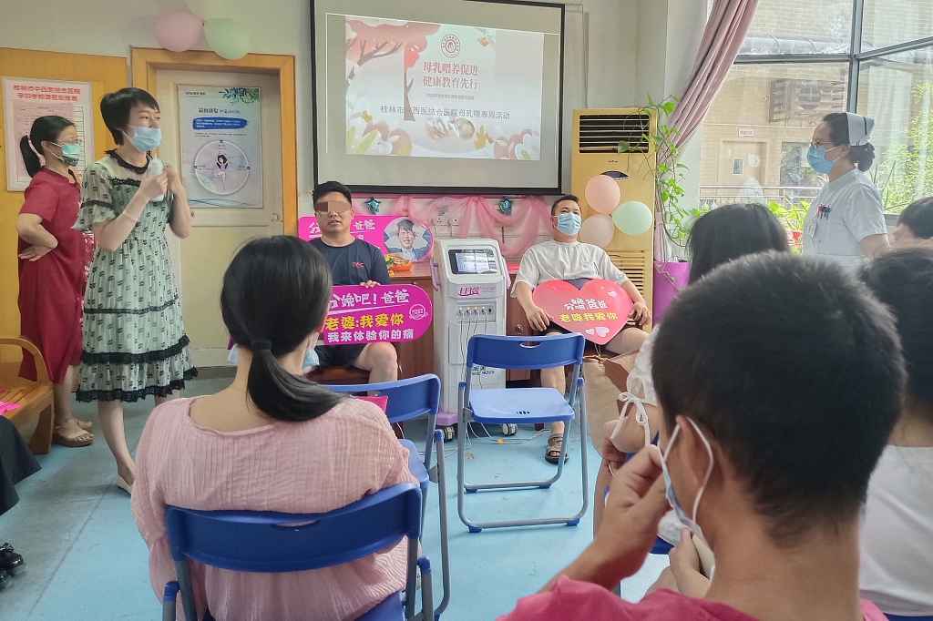 为迎接第31个世界母乳喂养周,桂林市中西医结合医院妇产科开展以“母乳喂养促进,健康教育先行”为主题的科普活动。此次活动旨在让准父母们了解和支持母乳喂养,让所有的母亲和婴儿都获得持续的、满意的、有效的母乳喂养体验。
