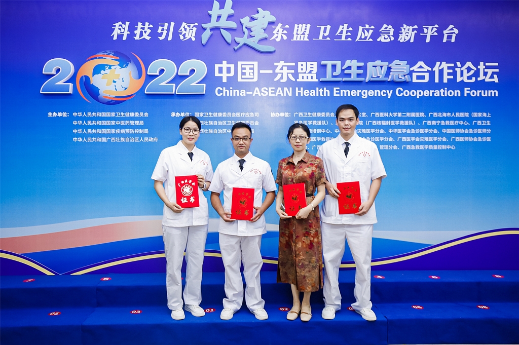 大赛由广西医学会主办,是“健康丝绸之路”建设暨第四届中国—东盟卫生合作论坛之系列学术活动之一。竞赛采用电脑智能客观评分+主观评分,通过模拟各种原因引起的心跳呼吸骤停病例来比赛。既考查选手们的心脏按压、人工通气、除颤仪等操作的基本功,又考验选手们对各种情况的综合应急处置能力。决赛更是模拟真实的院前院内抢救急危重病人繁忙的场景,从院前现场处置到院内多病人的抢救,从团队配合到医患沟通全方位的考查了急诊人的急救思维和专业实践能力,并通过网络全程现场直播。在紧张激烈的比赛中,桂林市中医医院急诊科团队勇于拼搏、沉着应战,出色完成了比赛任务,并得到现场解说员的高度赞誉,充分展示了中医急诊人的风采,最终收获一等奖。