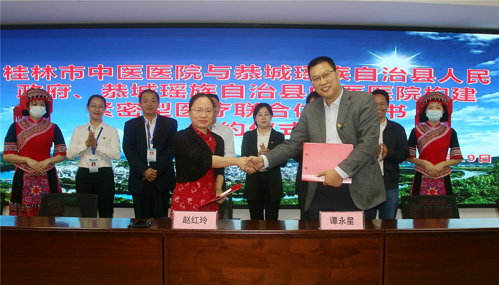恭城瑶族自治县副县长赵红玲与桂林市中医医院院长谭永星签署合作框架协议