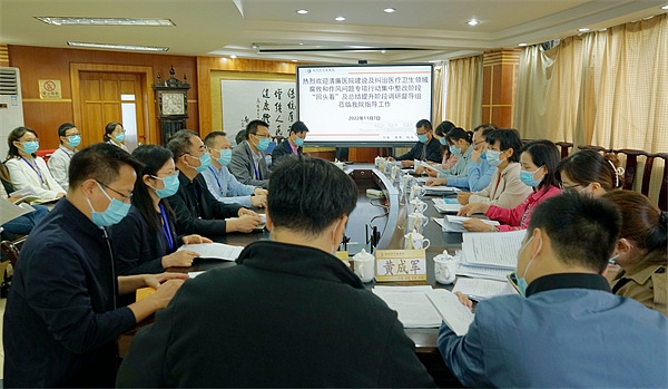 11月7日,桂林市卫健委调研员李晓娟率督查组一行10人,到桂林市中医医院开展清廉医院建设及纠治医疗卫生领域腐败和作风问题专项行动集中整改阶段“回头看”、总结提升阶段专项督查。医院全体领导班子及相关职能科室负责人陪同检查。