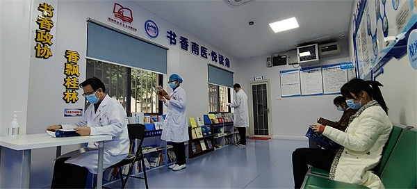 书香阵地氛围浓。2022年4月以来,为营造良好的文化氛围及就医体验,医院党委倾力打造各类读书阵地。在桂林市政协领导的重视、支持下,依托广西桂林图书馆、桂林市新华书店优势资源,联合打造桂林市首家医疗单位“广西桂林图书馆南溪山医院馆外流通点”、“书香医院阅读角”,收藏其赠送精品图书700余册,浓厚的书香首次在桂林医疗单位发挥了最大文化价值及作用,成为“书香南医”新名片;另医院党委精心打造住院部“职工书屋”,组织全院职工公益捐书3000余册,书屋为职工及患者提供免费茶歇,电子阅览及分类借阅服务,并且专门设置“红色读书”角,摆放红色经典书籍,为党史学习教育提供良好阵地。桂林市首个住院部内的温馨书屋启用至今,职工及患者争相借阅,已成为医护人员及住院患者的“充电宝”及“加油站”,深受好评;各科室读书会也利用闲置角落或专门开辟区域打造“小悦读角”10余个,在就诊区、医生办公室、病房、茶水间……随处可见的“阵阵书香”风格各异且特色鲜明。全院现已建成书屋及阅读角近300平米,收藏各类图书4700余册,书香阵地的相继打造,已成为职工学习充电的新窗口,温暖患者就医的新体验。