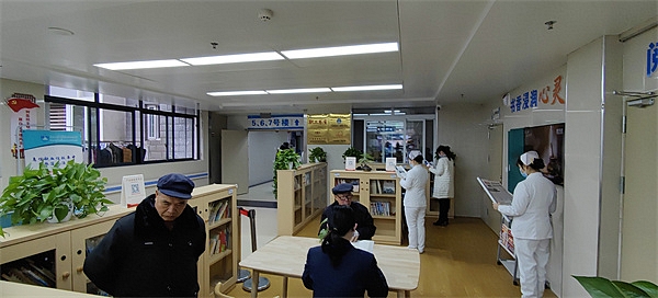 2022年8月23日,南溪山医院新的职工书屋在住院部一楼连廊处投入使用。