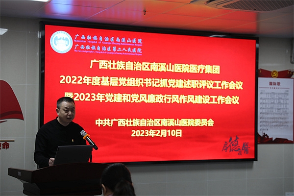 2月10日,广西壮族自治区南溪山医院医疗集团2022年度基层党组织书记抓党建述职评议工作会议在桂林召开。会议认真总结、全面展示了2022年党建融合发展成效,并就2023年医院党的工作进行动员部署。本次述职严抓质效,创新形式,呈现出了“四”大特色。