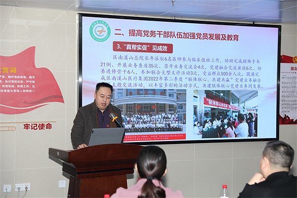 晒出成绩增信心。“一年来我们支部发展了5名党员”“组织了8次健康义诊”“开展了3项新技术”......通过连续3年的述职测评,支部书记表达能力有了明显提升,党建越来越规范;党建业务融合发展有了明显提升,形成了高质量发展;党员干部服务意识有了明显提升,公益担当显成效。总院党委书记戴前富表示,全场听下来、看下来、细思起来,看得出来我们每一个支部,在抓党建的时候都重思、重践、重悟,注重实效,更加规范。总院院长刘宇军指出,过去一年在疫情防控、等级医院复审、医疗业务发展、科研教学、学科建设等方面取得了较好的成绩,说明党建业务融合并不是一句空话。