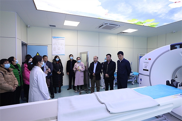 在南溪山医院党委书记戴前富的陪同下,李晔一行先后参观了该院国际健康管理中心、院史陈列馆、直线加速器、PET/CT等设施与设备。戴前富介绍,南溪山医院目前已成为桂林市单体院区规模最大、床位数最多、收治病人最多、高精尖医疗设备最新、环境最好的医院,目前正面向全院积极推进信息化技术的应用,逐步打造智能化服务体系。