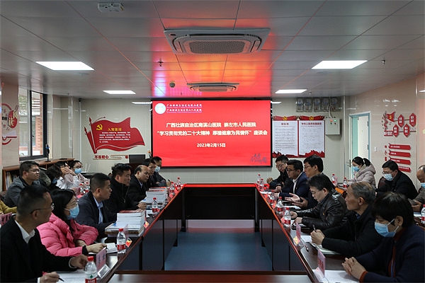 在随后的党建交流会上,戴前富向崇左市人民医院一行介绍了南溪山医院近年来的党建发展的基本情况,他表示,医院高质量发展离不开党建与业务的高度融合,南溪山医院坚持“院有品牌、科有特色、人有专长”,狠抓党建业务融合发展,把支部建到科室上,大胆引进、提拔人才,以高质量党建引领医院高质量发展。