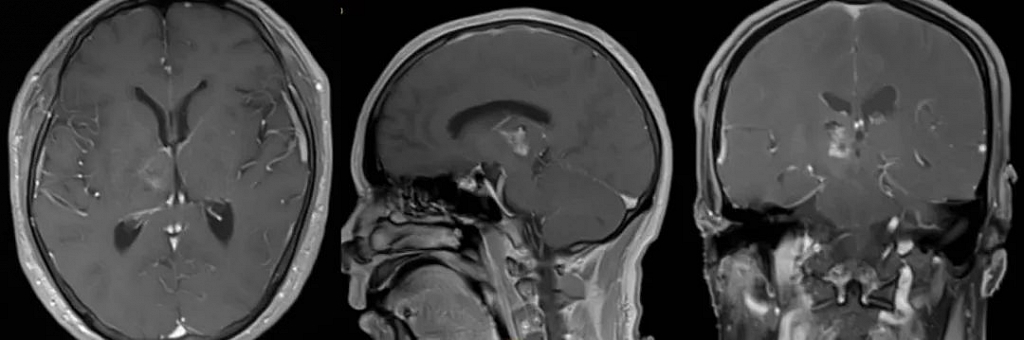 桂林医学院第二附属医院神经外科对莫先生进行了详细的检查。住院观察期间,莫先生症状加重,头晕头痛明显,左侧肢体有明显偏瘫现象,且频繁昏睡,瞳孔扩大,术前处于昏迷状态。医生结合莫先生病史、症状以及CT检查等表现,诊断其为右侧丘脑脑脓肿。