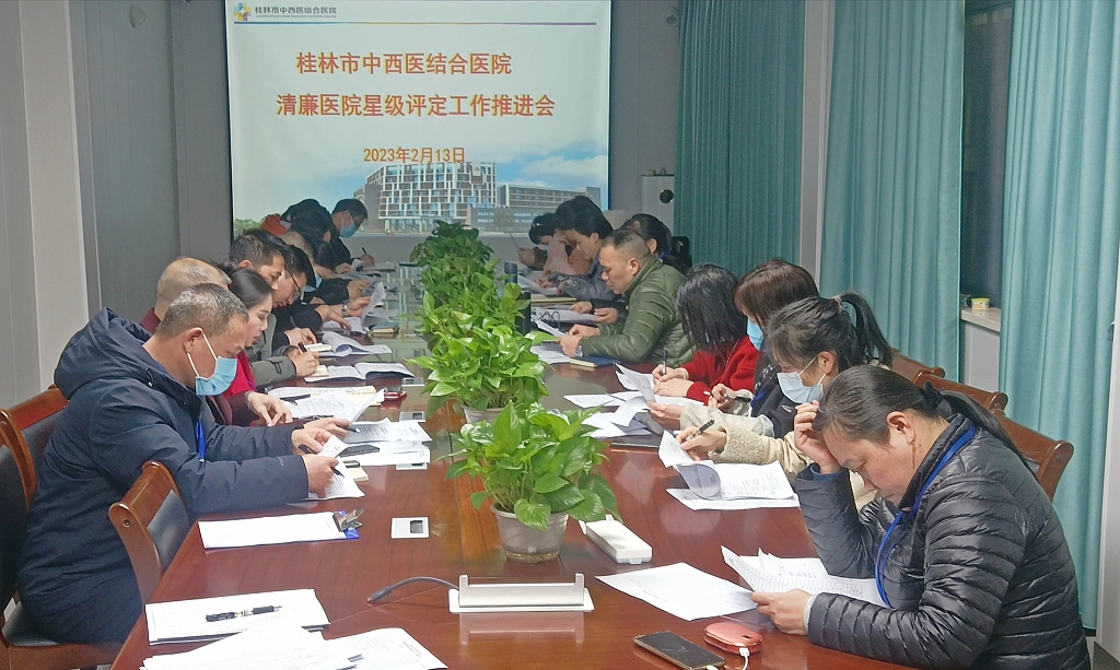 为深入贯彻落实自治区党委关于清廉广西建设的决策部署,持续推动医院党风廉政建设和反腐败斗争向纵深发展,深化全面从严治党,进一步推进清廉医院建设,打造特色鲜明的清廉医院品牌,构建群众满意的清廉医疗环境,近日,桂林市中西医结合医院组织召开清廉医院建设星级评定工作推进会议,副院长靳清主持会议并作工作部署,党办、院办、医务、监察等相关科室负责人参加此次会议。