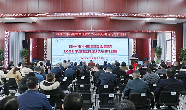 为进一步落实现代医院管理制度,提升医院全方位管理水平,坚持“稳增长、调结构、促发展”的工作思路,加强医院精细化运营管理,强化成本核算与管控,提高医院核心竞争力, 2月23日至24日,桂林市中西医结合医院举行2022年度经济运行分析比赛,党委书记于晖,院长蒋福明,副院长杨景毅、冯丽平、陈明、靳清任比赛评委,总会计师吴洪梅主持比赛。