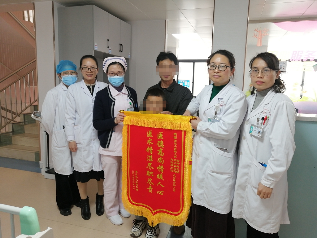 3月1日一早,奇奇的父亲就提着一面锦旗走进了南溪山医院儿科医生办公室,激动地说:“我们今天出院了,感谢赵主任、石医生,感谢你们对奇奇无微不至的照顾。”