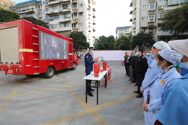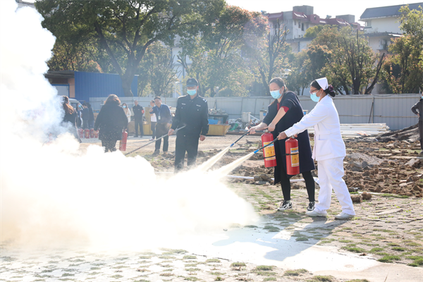 活动期间保卫科组织全院医务人员开展全员消防安全培训和演练,邀请辖区消防救援大队的专家给职工们授课,培训主要从消防安全常识、逃生技巧、发生火灾如何处置、灭火器材使用、如何疏散病人等。