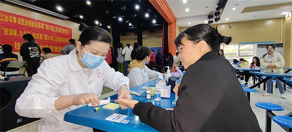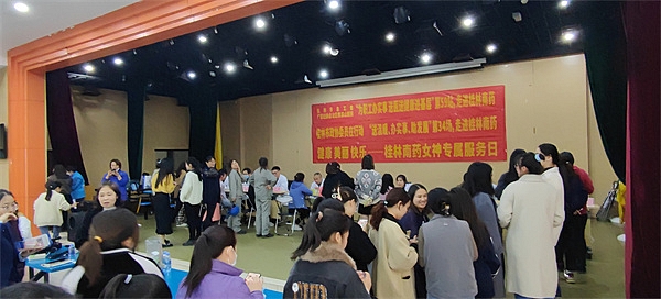 为纪念“三八”国际劳动妇女节,关爱一线职工身体健康,助力桂林工业生产和经济发展。3月7日下午,由桂林市政协办公室、桂林市总工会、广西壮族自治区南溪山医院联合开展的“为职工办实事送医送健康进基层”第59站暨桂林市政协委员在行动——“送温暖、办实事、助发展”第34场走进桂林南药股份有限公司。来自南溪山医院中医科、内分泌科、整形美容科、妇产科、营养科、甲状腺乳腺外科、脊柱骨科、健康管理中心等科室的医护人员以现场健康咨询、医疗诊断、治疗等方式为辛勤工作在企业一线的女职工提供高质量的医疗服务,以实际行动迎接一年一度的“女神节”的到来。(通讯员 张超群 黄梅英)