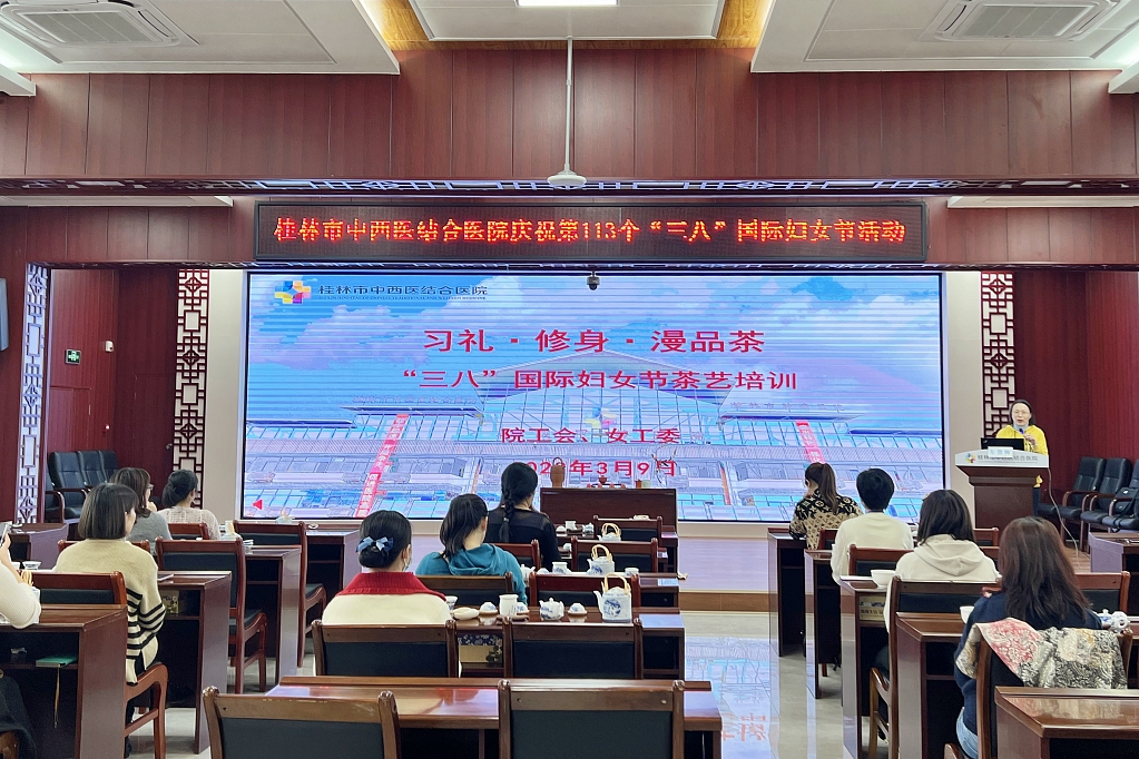 随着社会物质和精神生活的不断丰富,茶艺文化逐渐兴起和发展,并广泛融入到了人们生活当中。3月9日,在第113个国际劳动妇女节到来之际,为了丰富医院女性职工的文化生活,弘扬中华传统文化,桂林市中西医结合医院工会、女工委在中医文化大讲堂组织开展了一期“习礼·修身·漫品茶”活动,了解中国茶文化的博大精深,让医院女性职工度过一个充满意义的节日。