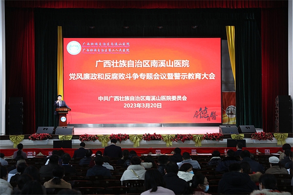 3月20日,广西壮族自治区南溪山医院召开党风廉政和反腐败斗争专题会议暨警示教育大会,对全面从严治党、深化党风廉政建设和反腐败斗争、清廉医院建设进行再强化、再部署。