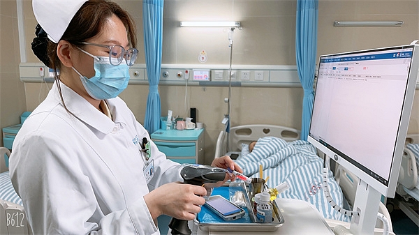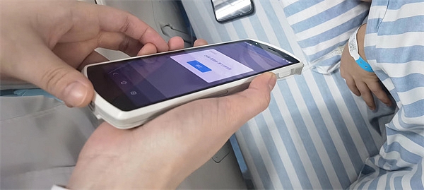 目前,在自治区南溪山医院,患者办理入院手续后,获得带有身份标识的腕带,经护士确认无误后佩戴,护士通过移动手持终端扫描腕带上的条形码即可确认患者身份、床号、药物使用等相关信息。