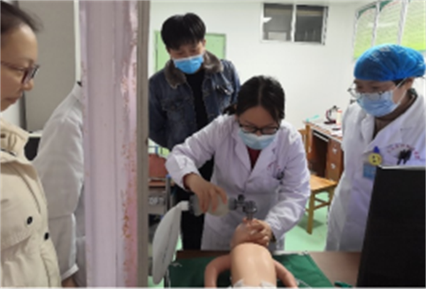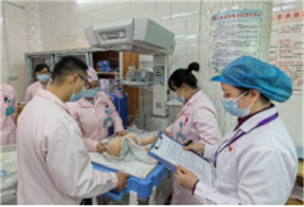 3月中旬,支部书记韦毅带队到医联体单位贺州广济妇产医院开展党建业务工作,对新生儿科10余名医护人员进行窒息复苏培训和教学查房。
