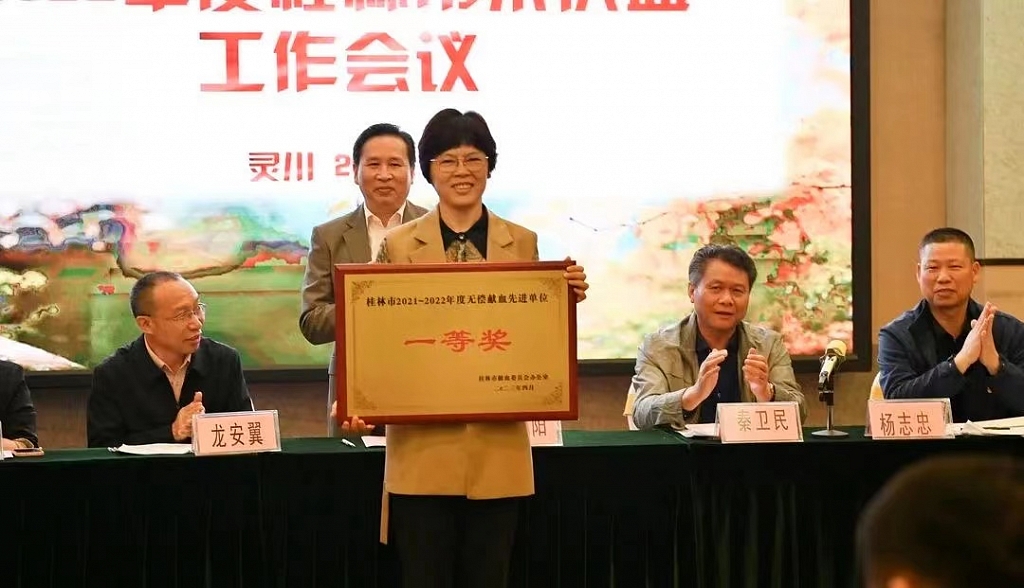 4月14日,桂林市2022年度无偿献血工作会议在灵川县召开。广西壮族自治区南溪山医院荣获桂林市“2021-2022年无偿献血先进单位一等奖。这是该院连续第四年获此殊荣。