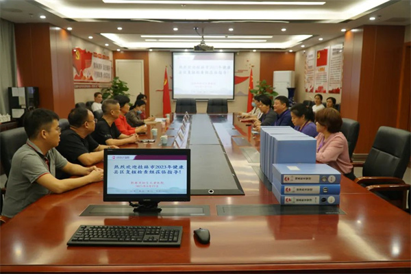 2023年4月19日下午,桂林市卫生健康委四级调研员李晓娟带队一行五人到桂林市妇幼保健院开展2023年健康县区“健康促进医院”的市级复核初评工作。市妇幼保健院纪委书记孙辉及相关职能部门负责人参加迎检工作。