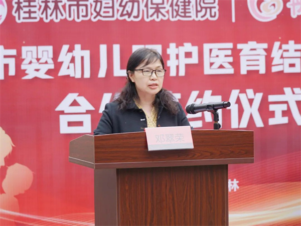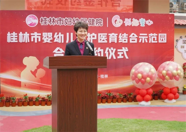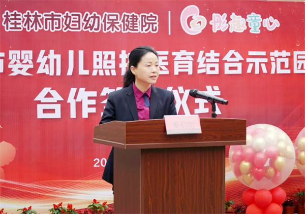 桂林市计划生育协会专职副会长邓翠荣表示,桂林市妇幼保健院(市婴幼儿照护指导中心)与桂林市彤趣童心托育园达成的合作,充分利用了公立医院与托育单位“双专业”的技术优势,一方面利用医院医疗优势和儿科保健资源为托育园提供专业化指导,提升合作托育园的办园水平;另一方面通过合作把托育园纳入医疗机构的监管,为医务人员的幼儿提供放心安全的照护服务,通过“医育结合”的方式,达到双赢;同时她希望,通过双方合作,积极推进桂林市“国家婴幼儿照护服务示范城市”的创建工作,全面启动桂林市婴幼儿照护“医育结合”的工作模式,为推动桂林市生育照护服务,保障"幼有所育”目标而开启新的探索。