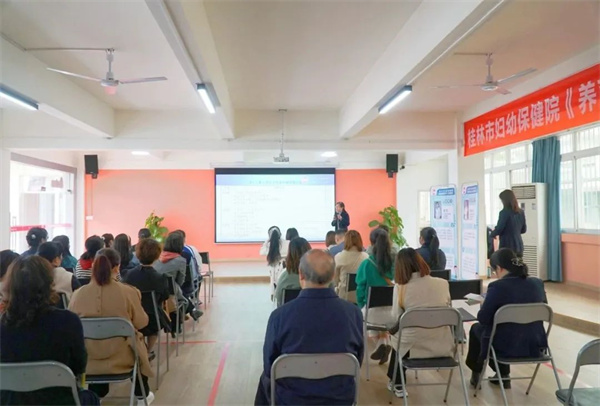 仪式后,桂林市妇幼保健院儿童保健科主任申炎杰围绕《婴幼儿健康养育照护(生长发育篇)》,儿童保健科副主任医师黄灵则以《婴幼儿行为发育异常的早期识别》为题,进行了养育照护知识讲座。