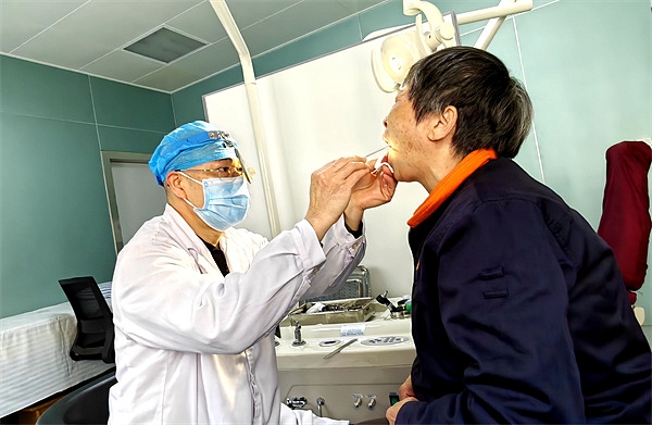 5月1日上午,南溪山医院耳鼻喉科陈华东医师为一名患者取鱼刺