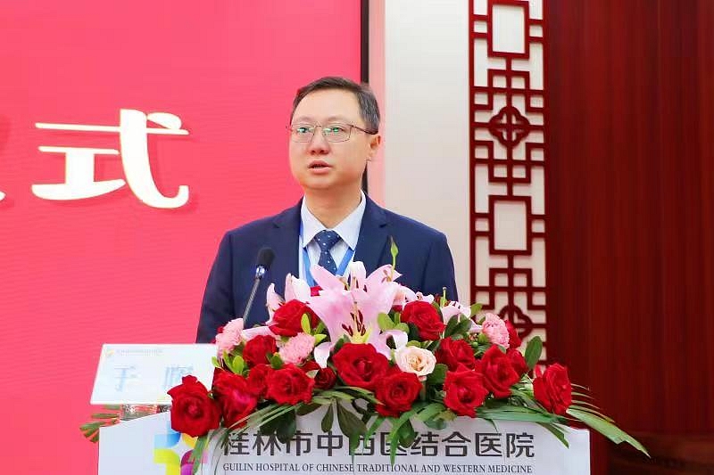 广西肿瘤放射治疗专科联盟主席王仁生教授代表广西肿瘤放射治疗专科联盟对桂林市中西医结合医院新高端直线加速器的开机表示祝贺,并简要介绍了广西肿瘤放射治疗发展情况。