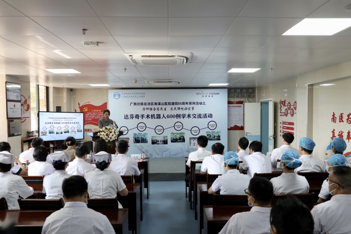 5月26日,广西壮族自治区南溪山医院举办建院55周年系列活动之达芬奇手术机器人手术例数突破600例学术交流活动,与国内知名专家切磋问道,回顾该院过往618例机器人手术成效,通过学术讲座、理论指导、手术实操等学研结合的交流,不断提升运用尖端科技为民解忧办实事的能力。