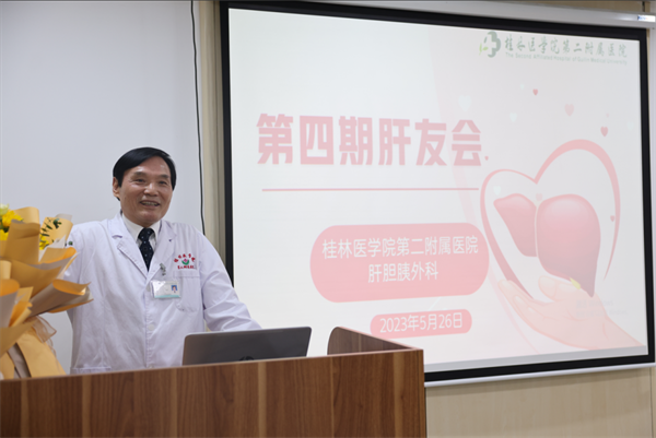 5月26日,桂林医学院第二附属医院肝胆胰外科举办了第四期肝友会活动。本次活动由首席专家梅铭惠教授、姚红兵教授亲自莅临指导,邀请了老病友阳女士、在院病人及家属共30余人参与。