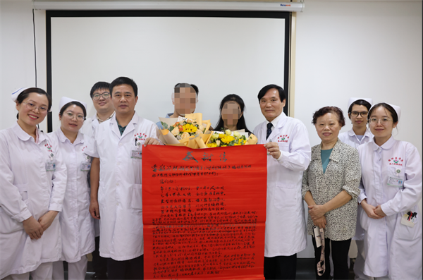 随后,梅铭惠教授和姚红兵教授为阳女士及家属送上鲜花和蛋糕,祝贺她重获新生,感谢他们对医院的信任,以及对生活的热爱。