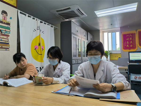 5月29日,在输血科办公室,医技第七党支部开展学习贯彻习近平新时代中国特色社会主义思想主题教育活动。党员们认真学习党的思想,并学习获得医院护理表彰的人员代表的先进事迹,以身边的榜样力量促进自身发展。