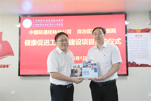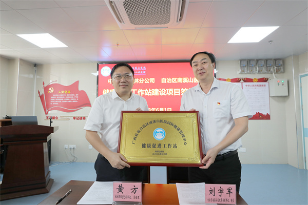 最后,刘宇军与黄方代表双方签订了《广西壮族自治区南溪山医院国际健康管理中心健康促进工作站建设项目合作协议书》,并进行了健康促进工作站授牌。双方还进行了文化礼品交流,共同推动了两个单位的文化建设。